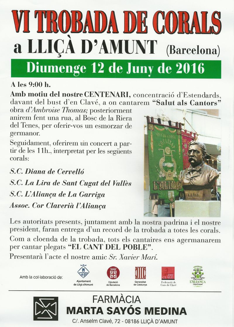 VI TROBADA DE CORALS A LLIÇA D'AMUNT. DIUMENGE 12 DE JUNY.